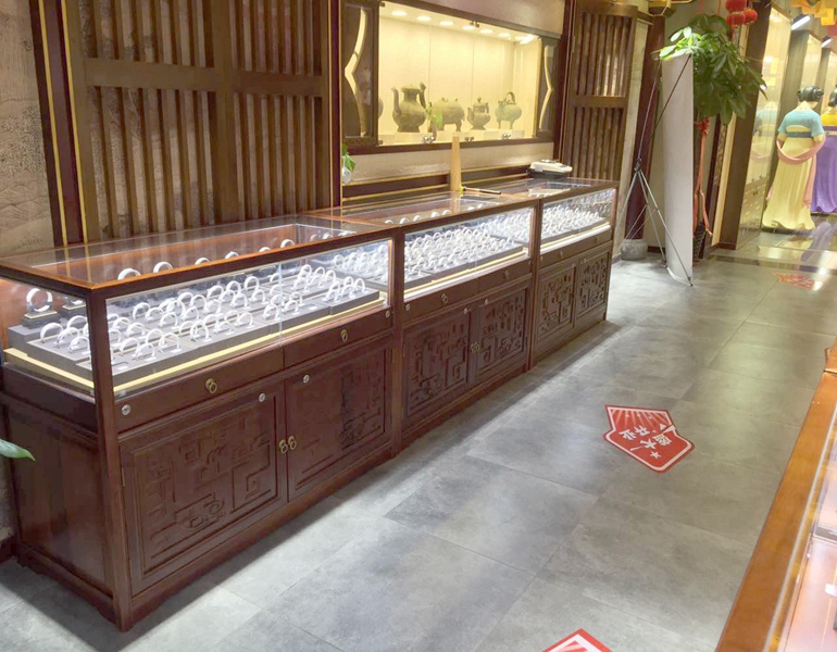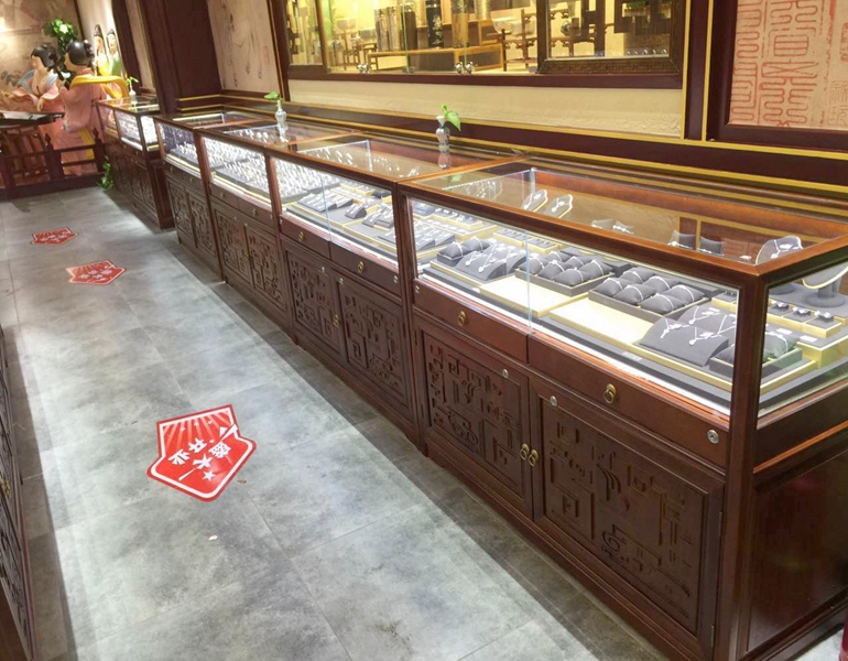 店铺名称: 西安子佩集 店铺类型: 珠宝展柜 是否定制: 是 制作尺寸: (常规)尺寸可订做,可按要求设计出效果图 制作材质: 实木定制+钢化玻璃+LED灯+雕花+五金+绒布 安装地点: 西安 服务内容: 设计+制作+安装 物流方式: 运输