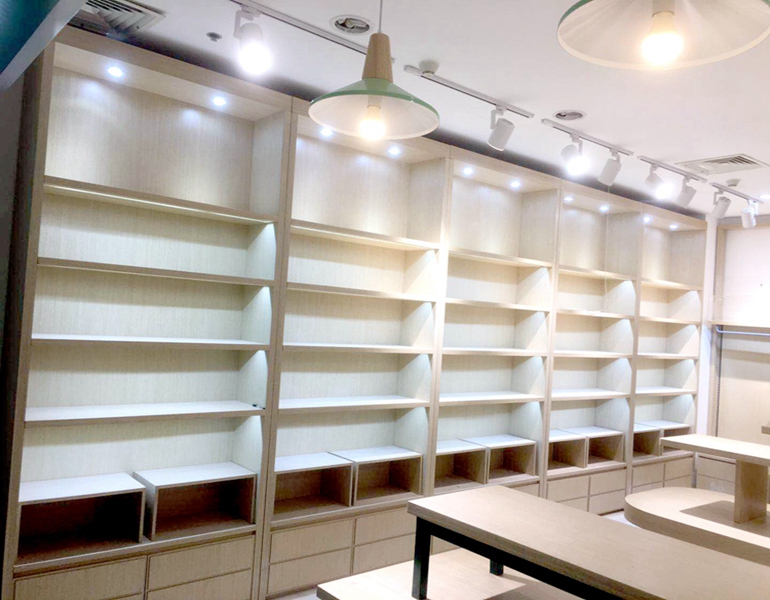 店铺名称: 半打袜 店铺类型: 内衣家居展柜 是否定制: 是 制作尺寸: (常规)尺寸可订做,可按要求设计出效果图 制作材质: 中纤板+灯具+木纹+刀架+五金+A柱 安装地点: 四川成都温江 服务内容: 设计+制作+安装 物流方式: 运输