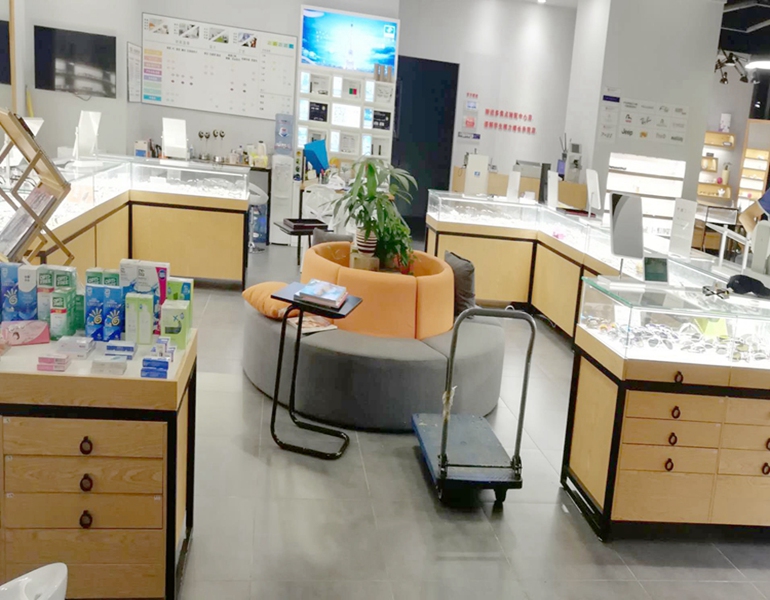 店铺名称: 意特优斯 店铺类型: 眼镜展柜 是否定制: 是 制作尺寸: (常规)尺寸可订做,可按要求设计出效果图 制作材质: 中纤板+木纹+五金配件+超白玻璃+LED灯+褐色喷塑矩管 安装地点: 四川 服务内容: 设计+制作+安装 物流方式: 运输
