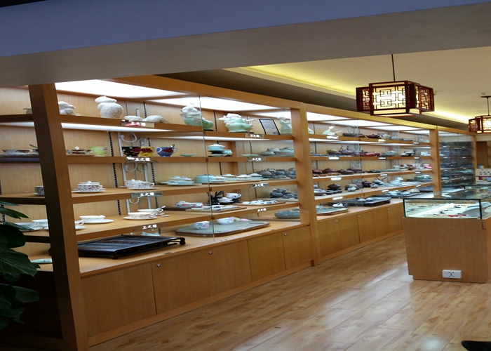 店铺名称: 天府艺术馆 店铺类型: 工艺品展柜 是否定制: 是 制作尺寸: (常规)尺寸可订做,可按要求设计出效果图 制作材质: 中纤板+烤漆+LED灯+钢化玻璃+A柱+五金 安装地点: 四川成都 服务内容: 设计+制作+安装 物流方式: 运输