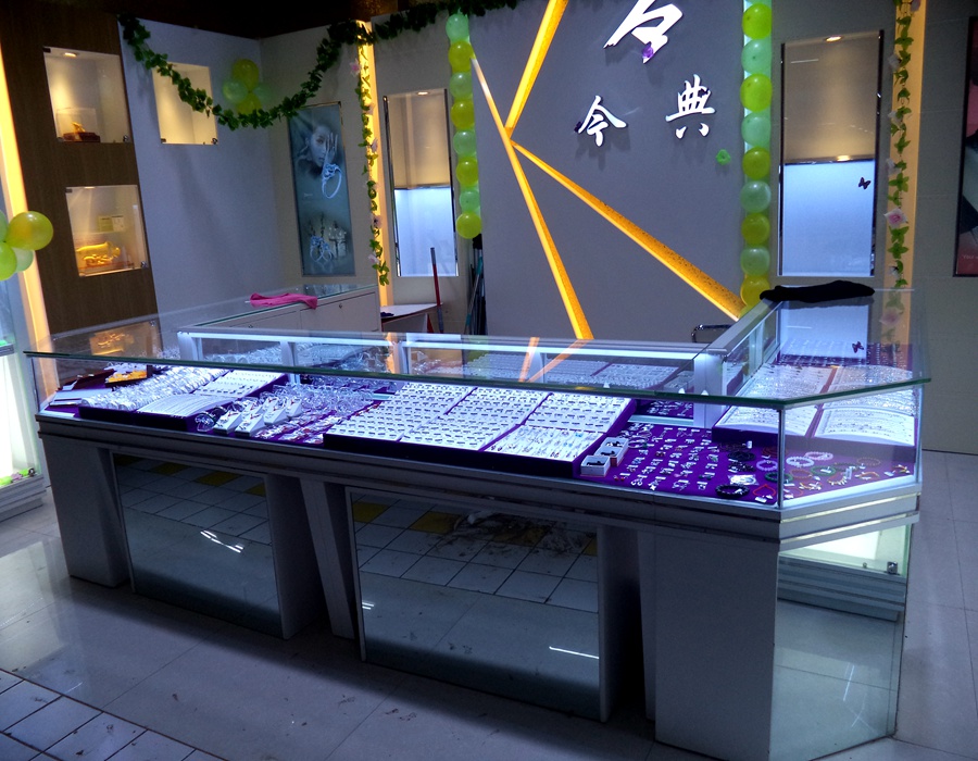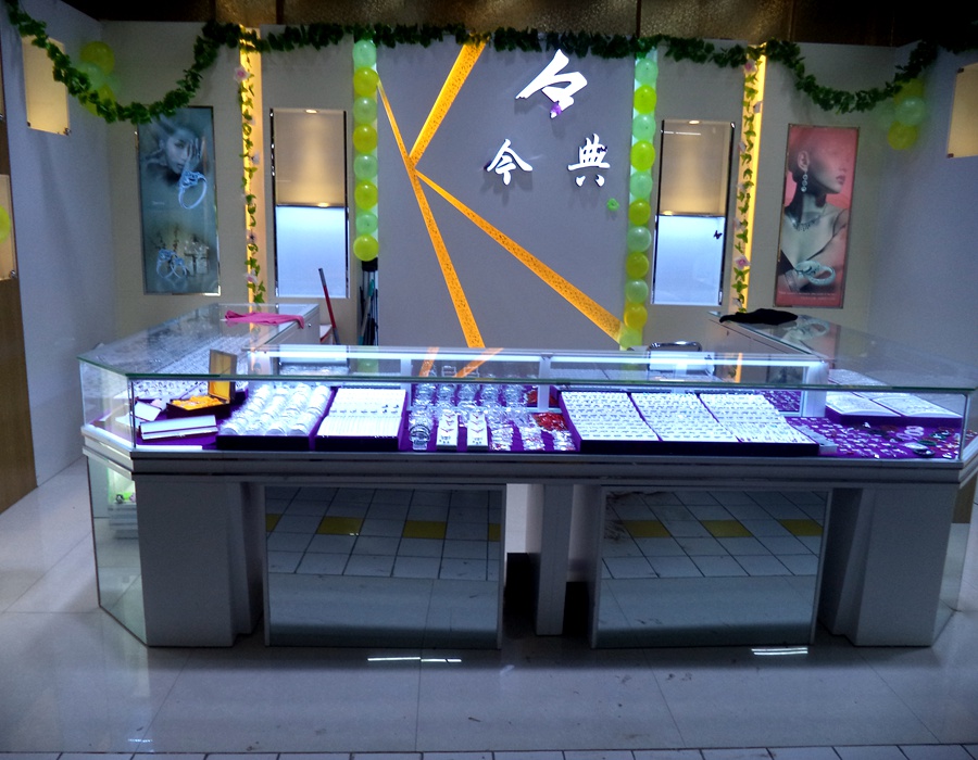 店铺名称: 今典 店铺类型: 饰品展柜 是否定制: 是 制作尺寸: (常规)尺寸可订做,可按要求设计出效果图 制作材质: 中纤板+烤漆+LED灯+超白玻璃+发光字+软膜灯箱+矩管 安装地点: 四川成都 服务内容: 设计+制作+安装 物流方式: 运输