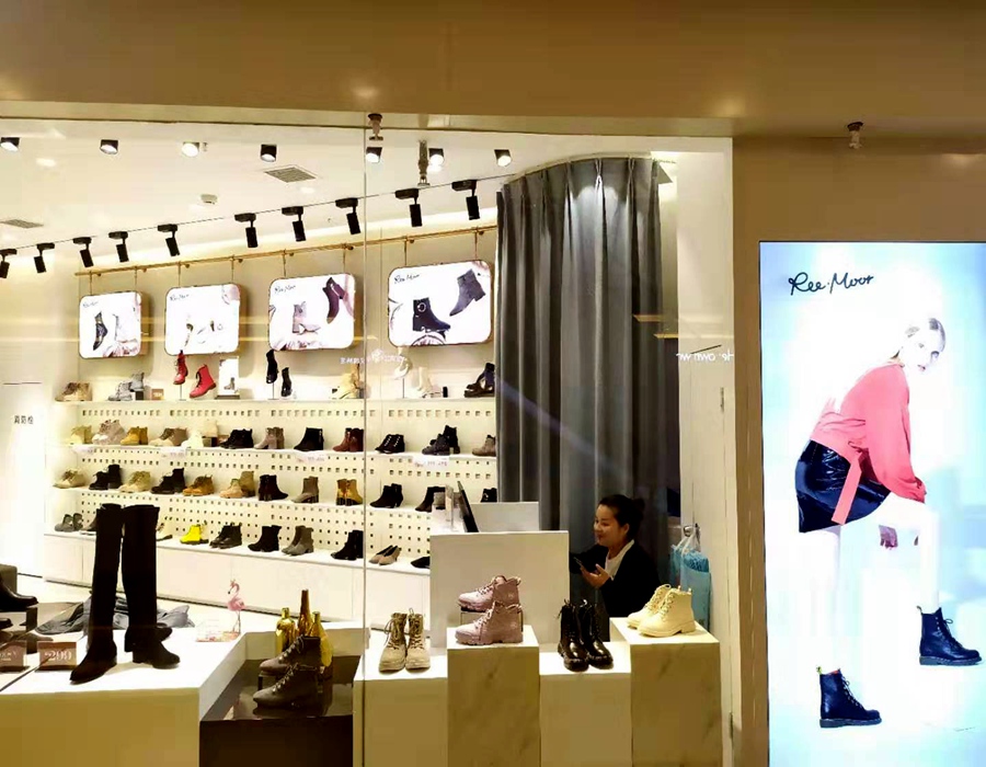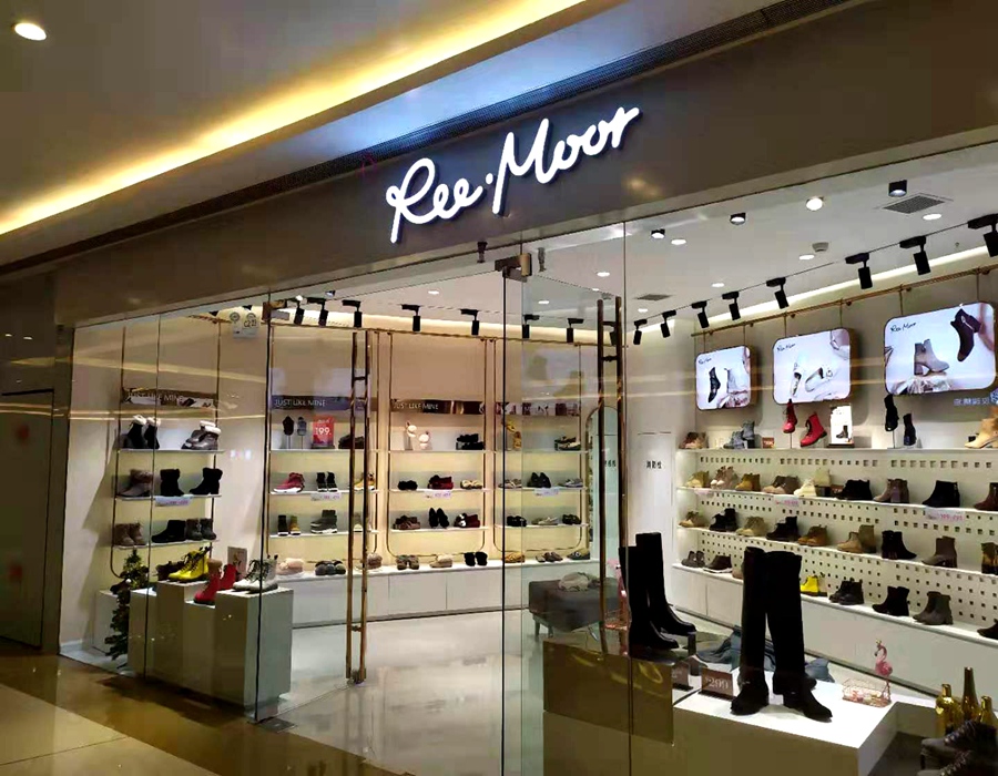 店铺名称: 睿幕 店铺类型: 鞋包展柜 是否定制: 是 制作尺寸: (常规)尺寸可订做,可按要求设计出效果图 制作材质: 中纤板+烤漆+LED灯+软膜灯箱+人造大理石+发光字 安装地点: 四川成都 服务内容: 设计+制作+安装 物流方式: 运输